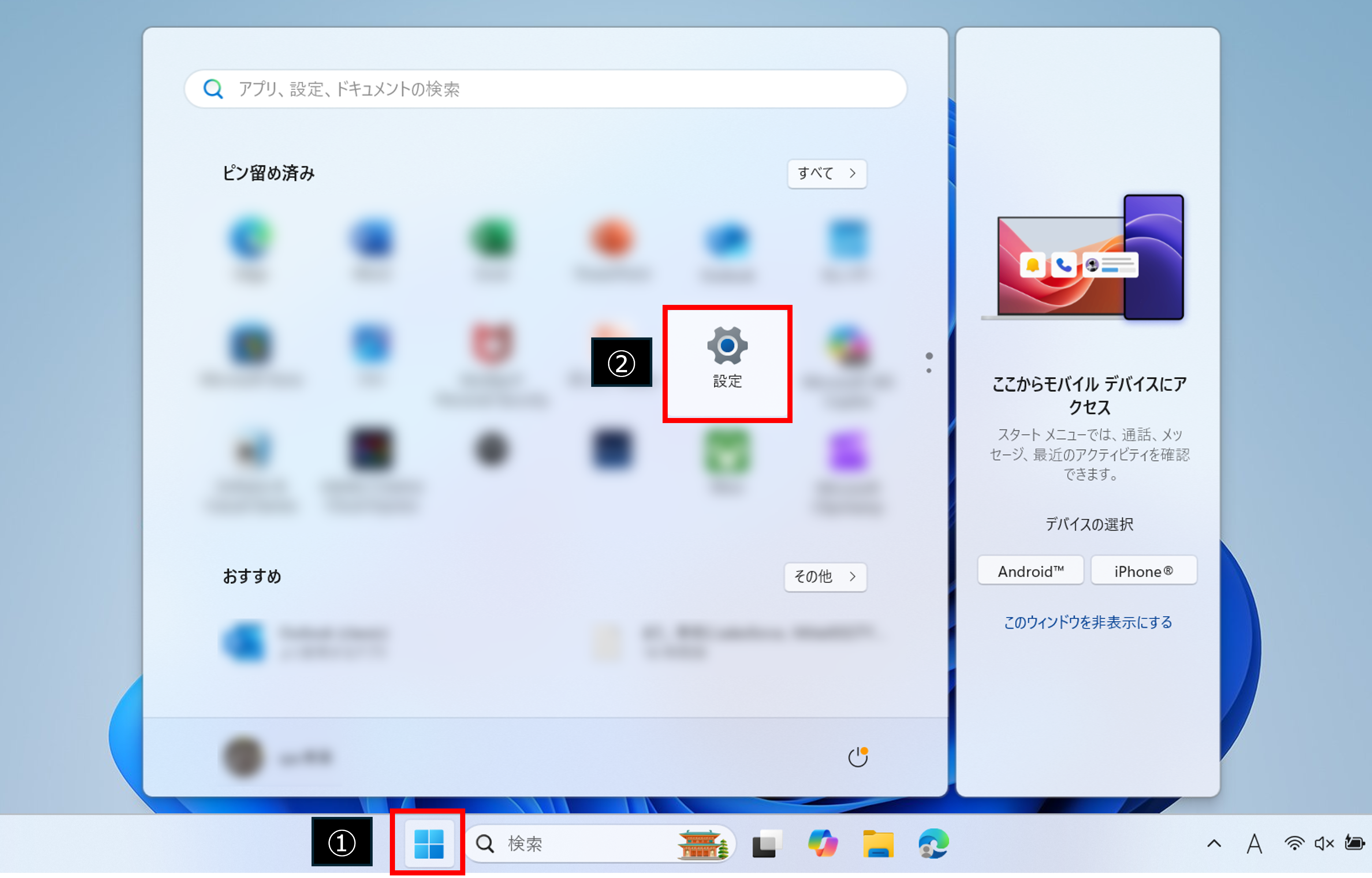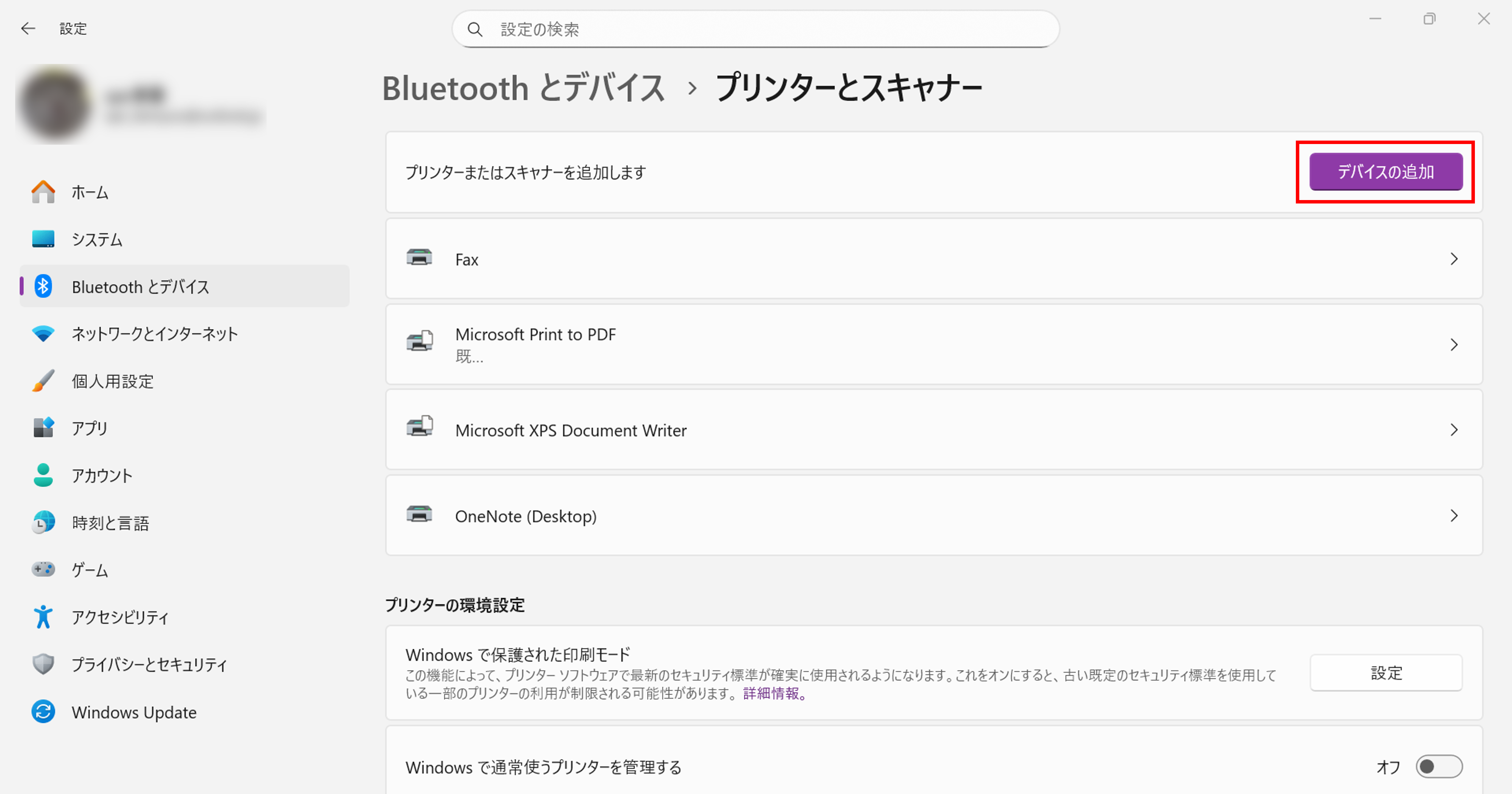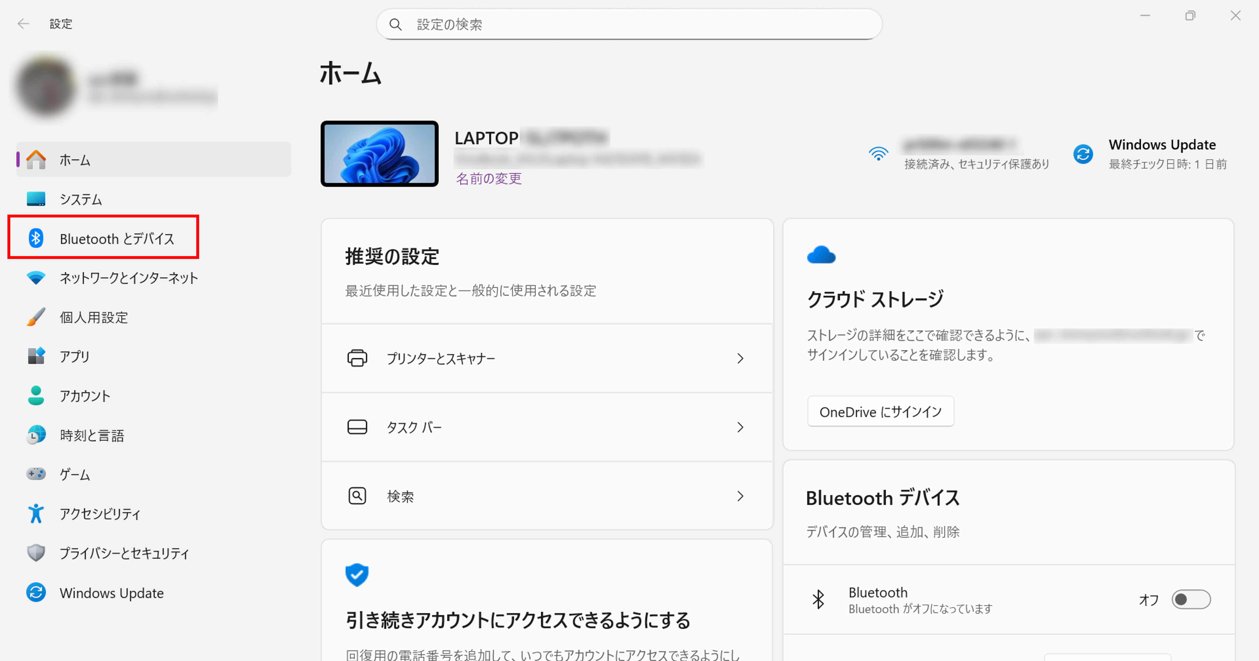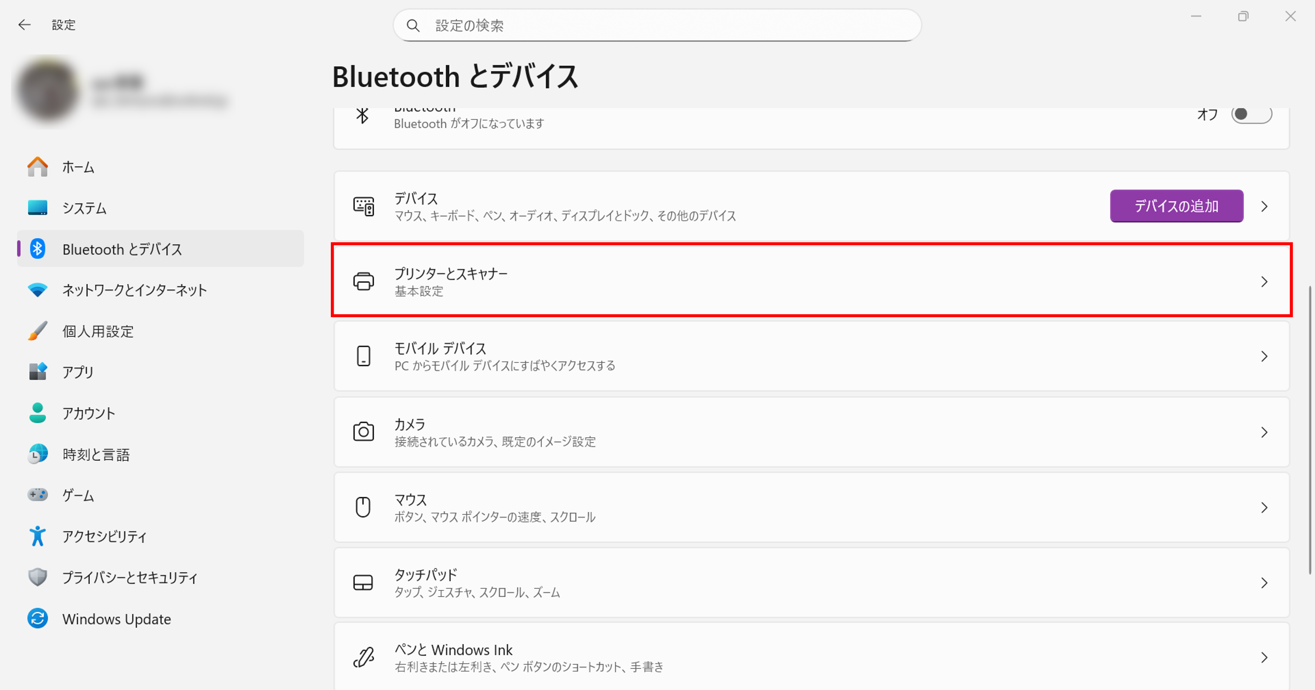 3.左側のメニューから 「Bluetoothとデバイス」 を選択します。