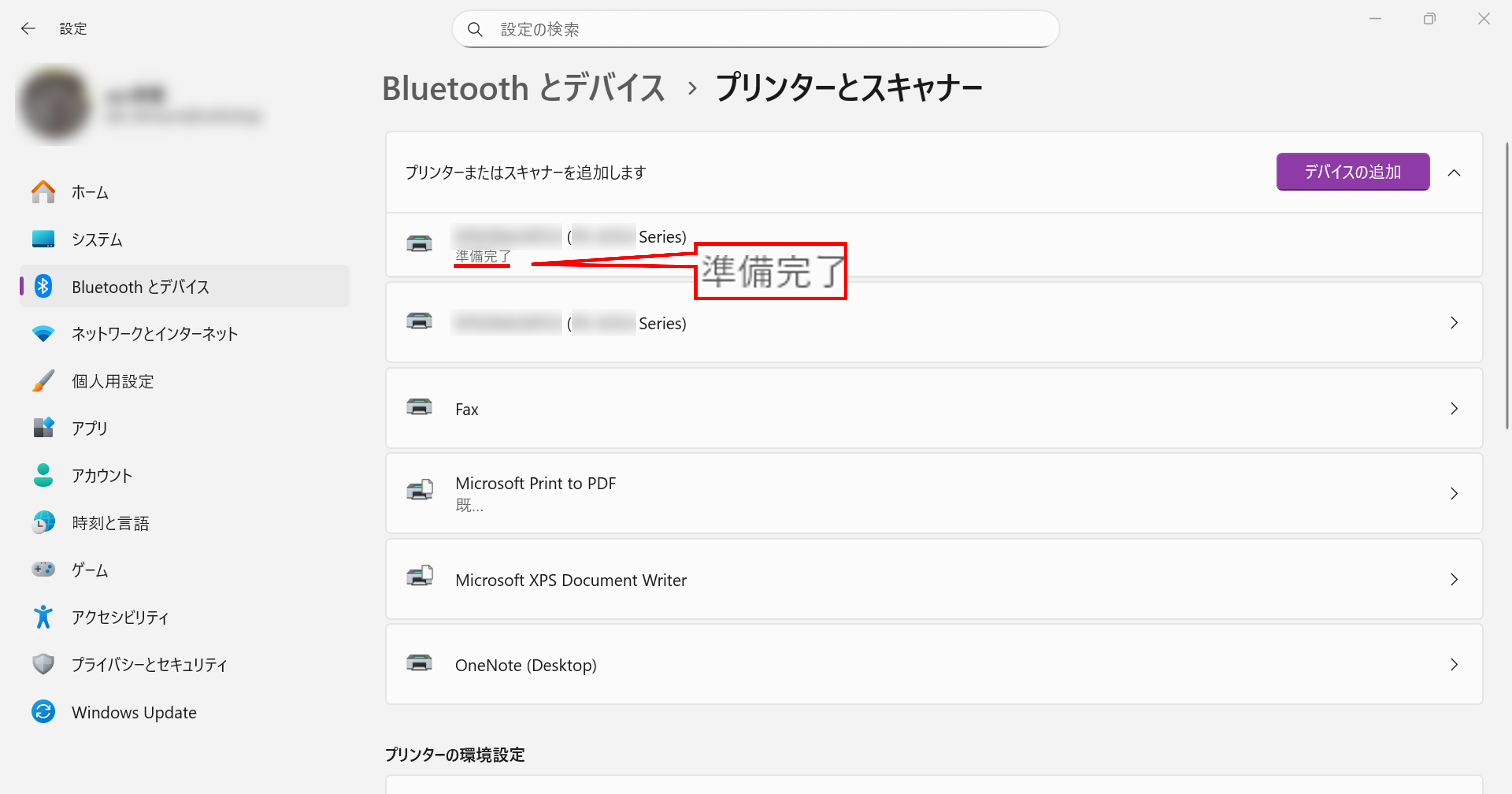 ※接続が完了していない場合、パソコン側でプリンターが認識されず、追加設定が進まないことがあります。